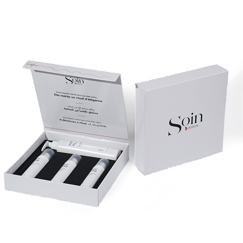 Ce coffret incarne la vision de Soin Dermal : allier l’authenticité d’ingrédients naturels d’exception comme le safran, aux actifs cosmétiques les plus performants.